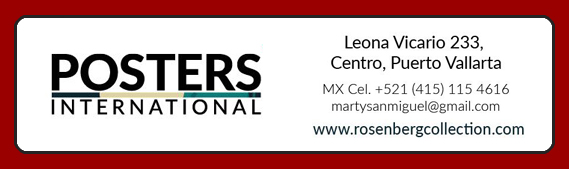 Expone la colección de carteles culturales de Europa Central más completa del mundo, incluyendo carteles de películas, teatro, viajes, música, danza, deportes, ópera, jazz, circo y política. Presentando artistas premiados de los últimos 100 años. La galería anteriormente estuvo en Chicago, IL, Santa Fe, NM, y San Miguel de Allende, MX. El fundador de Rosenberg Collection se desempeñó como Director de la Junta de la Asociación Internacional de Distribuidores de Pósters Vintage, Autor, Consultor de Arte y Ponente en el diseño de carteles. Productor ejecutivo del documental Freedom on the Fence presentada en Museum Modern Art, NY y en muchos festivales de cine. Esta película y la historia del artista completa están incluidos con tu selección de cartel.